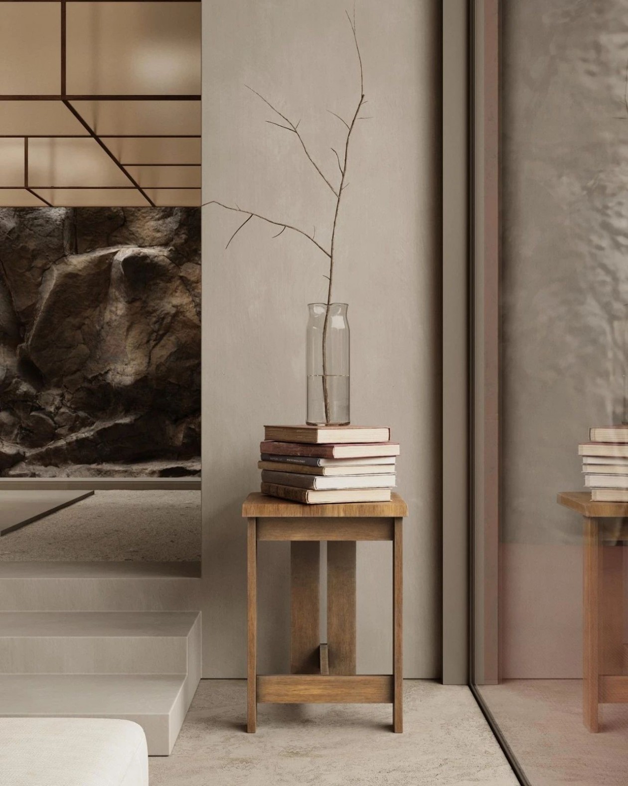设计为书房和露台。书房布置简洁,书架和书桌满足工作和学习的需求。露台则打造为一个休闲的户外空间,摆放了舒适的座椅和遮阳伞,可在此欣赏风景。