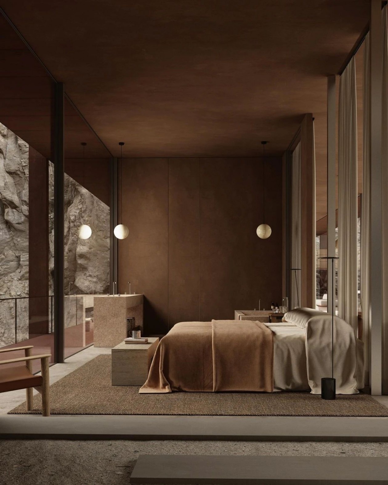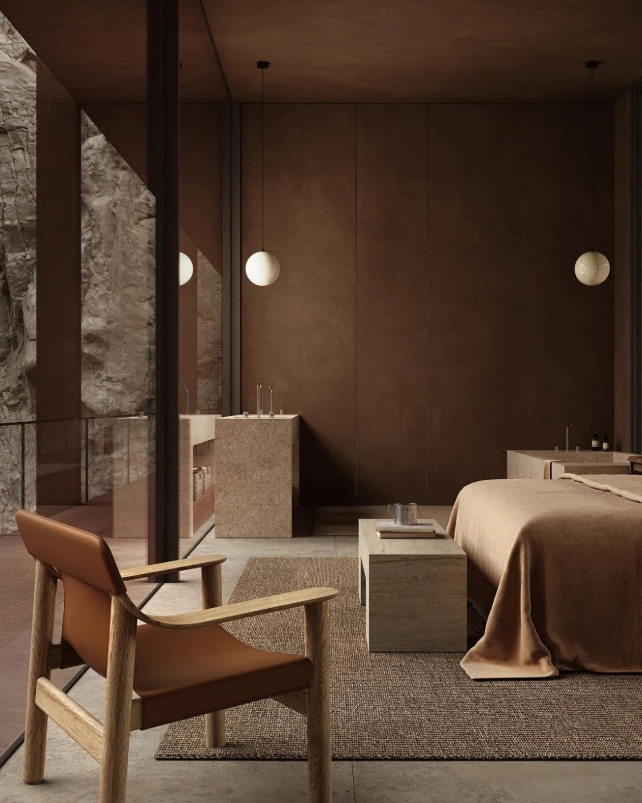 本案例以“简约而不简单,优雅且舒适”为设计理念,运用咖色为主色调,搭配简洁的线条和高品质的材料,营造出低调奢华且富有内涵的空间氛围。