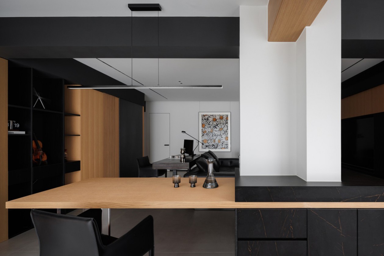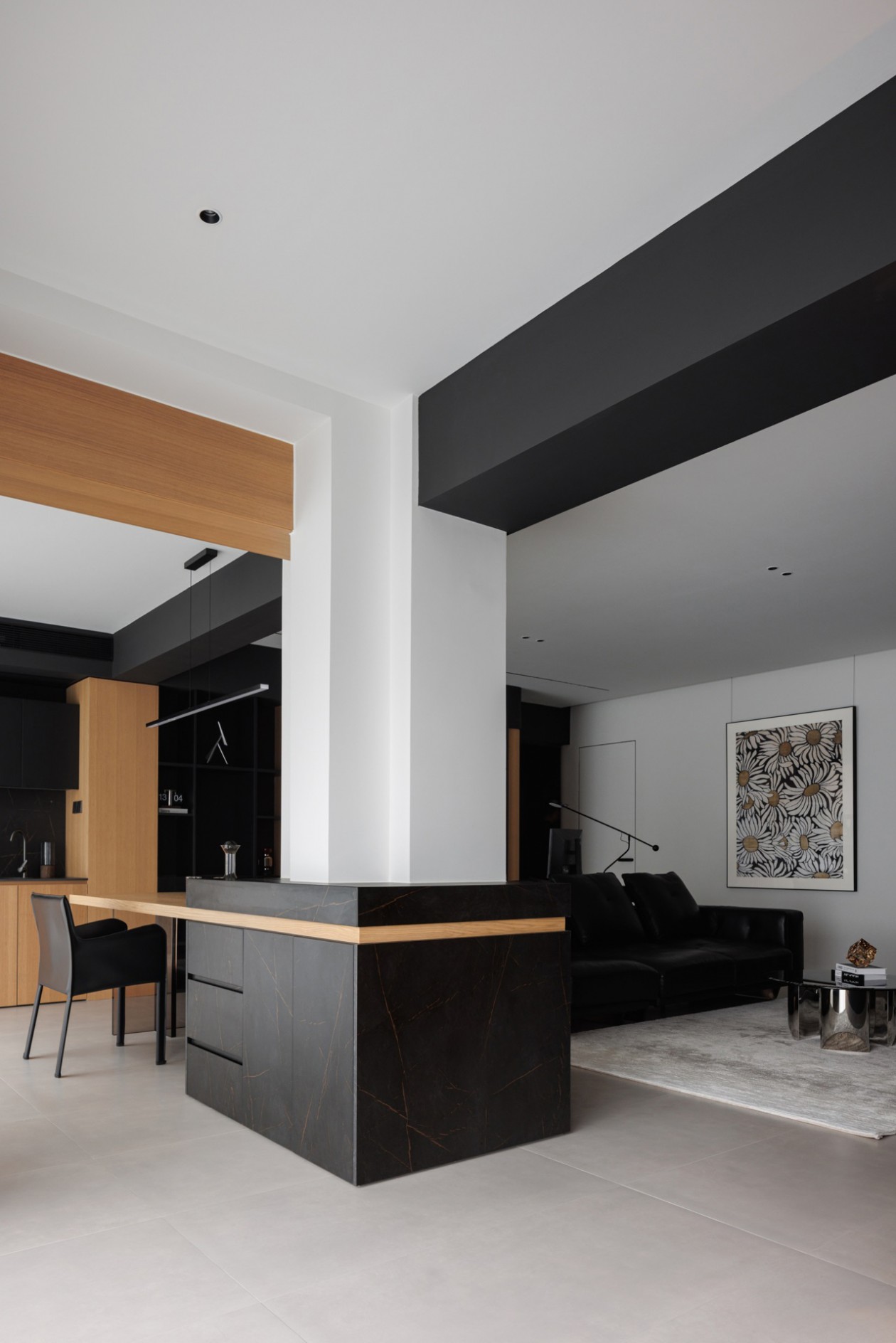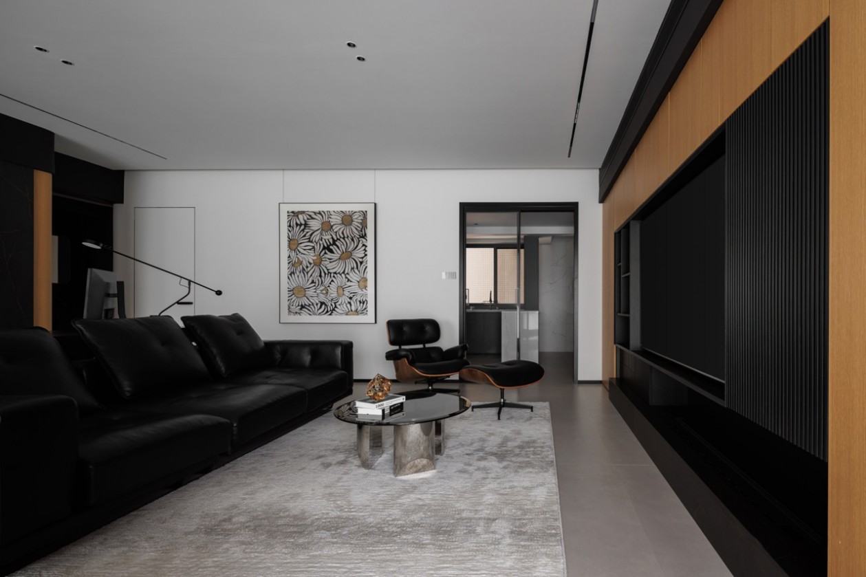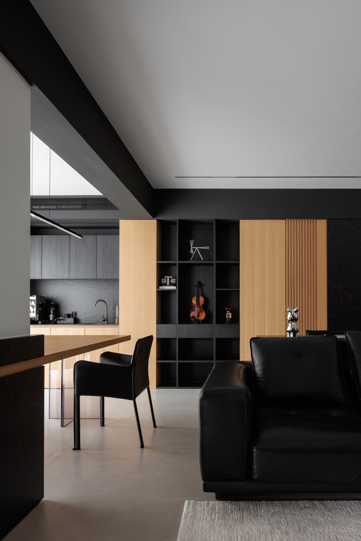 黑与木的质感协奏:意式极简别墅室内空间的静谧格调