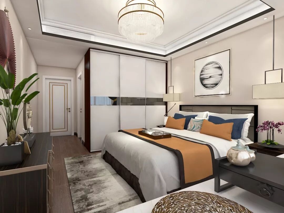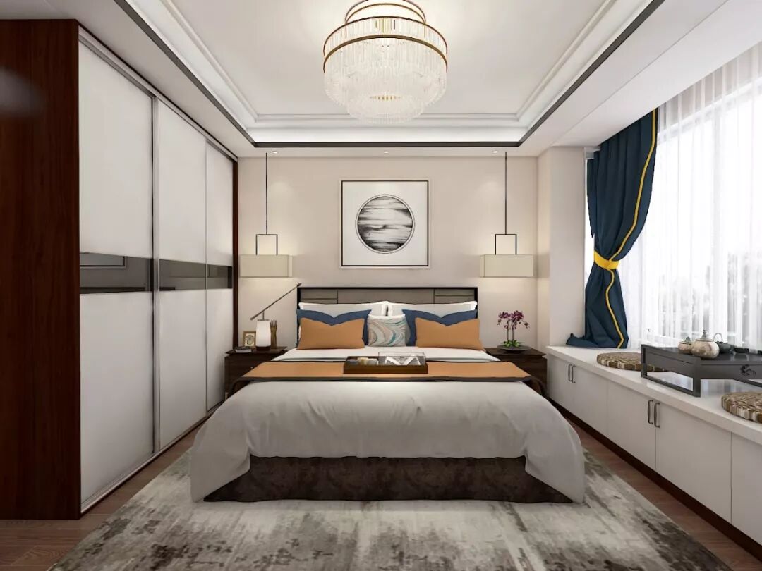 卧室整体色调较为朴素,身处其中,仿佛逃离了喧嚣的闹市,隐约能感受到一缕安宁与惬意。另外置顶衣柜具备强大的收纳功能,满足主人分类存放衣物的需求;而增加的飘窗设计,则可满足主人偶尔坐在飘窗边喝茶下棋的小心愿。
