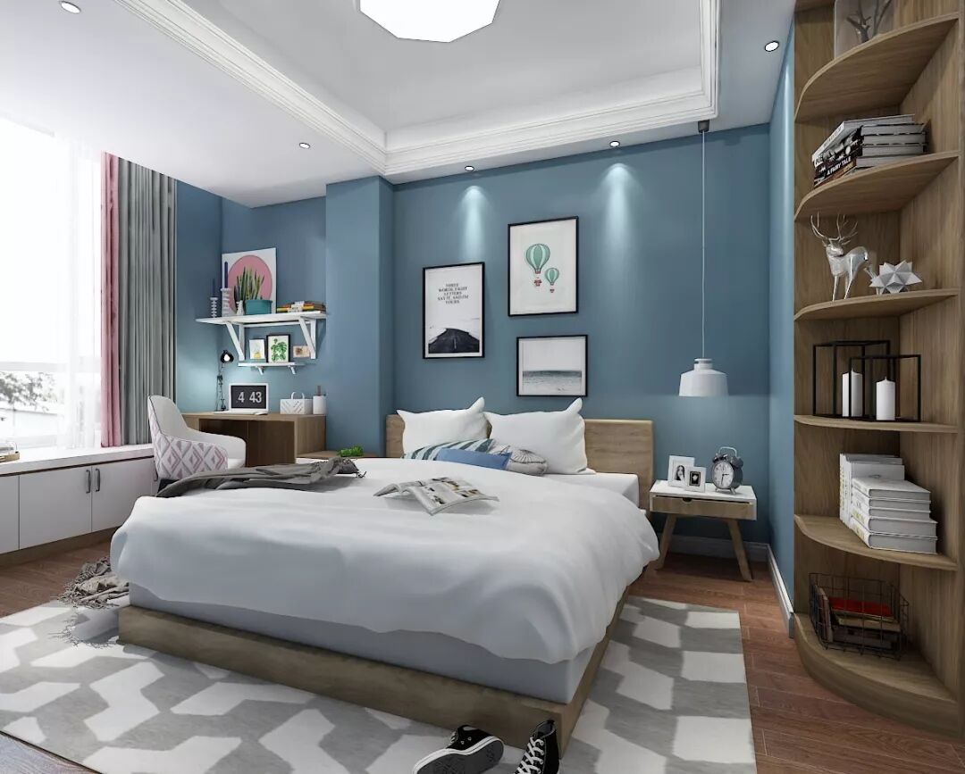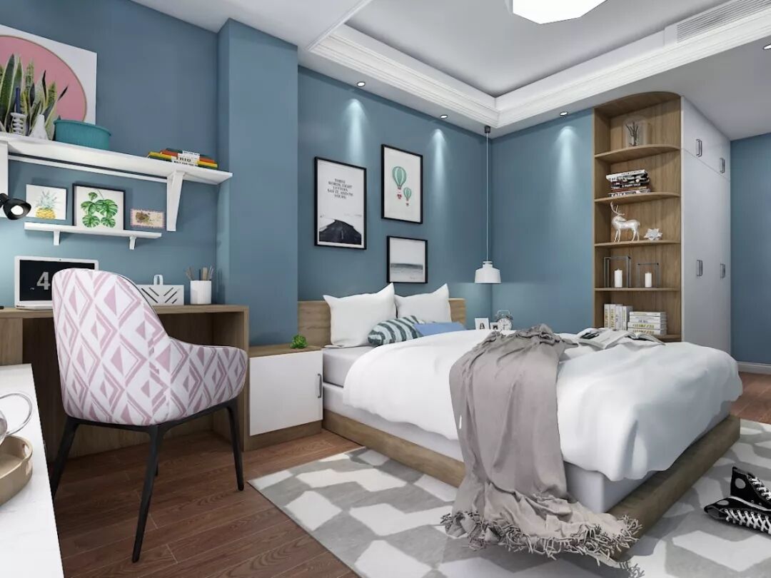 女儿房采用金丝木与白木的撞色设计,宁静中透露出雅致,立体规整又错落有致,简约而不简单。配以高级灰与蓝色相互映衬,温馨优雅,再以粉色淡淡点缀,让整个空间的更具有视觉冲击力,营造出活泼可爱的家居氛围。