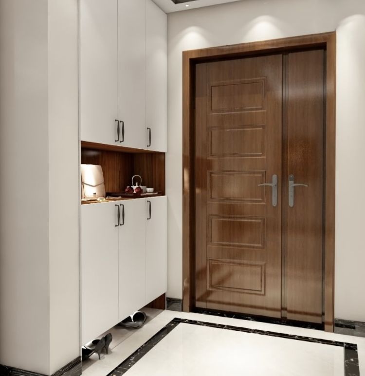 入户柜与客厅相连,虽然占地面积不大,但中间镂空区域可方便主人随手放置包包、钥匙等物品;另外柜子内部按照不同功能进行分区设计,满足主人多种收纳需求。