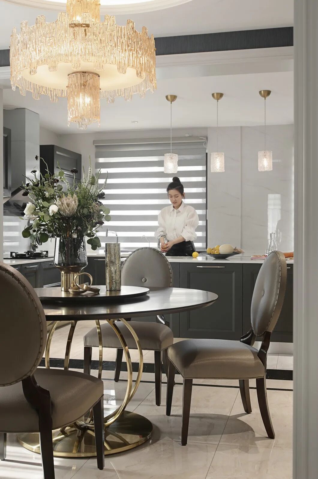 圓形餐桌更適合六口之家的用餐需求