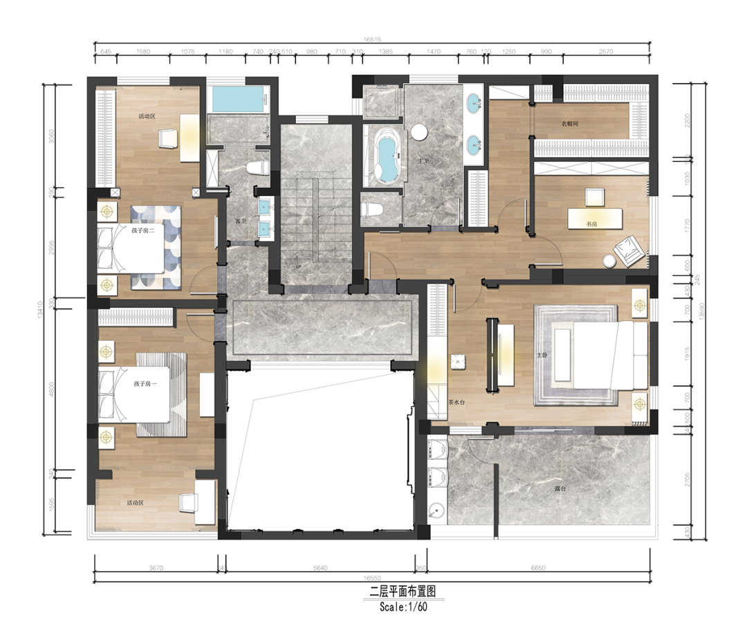 臥室樓層的劃分也將兩代人生活分離