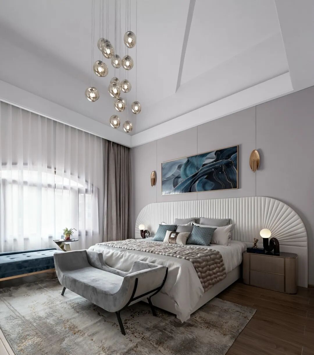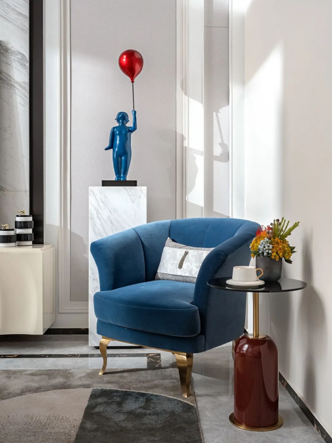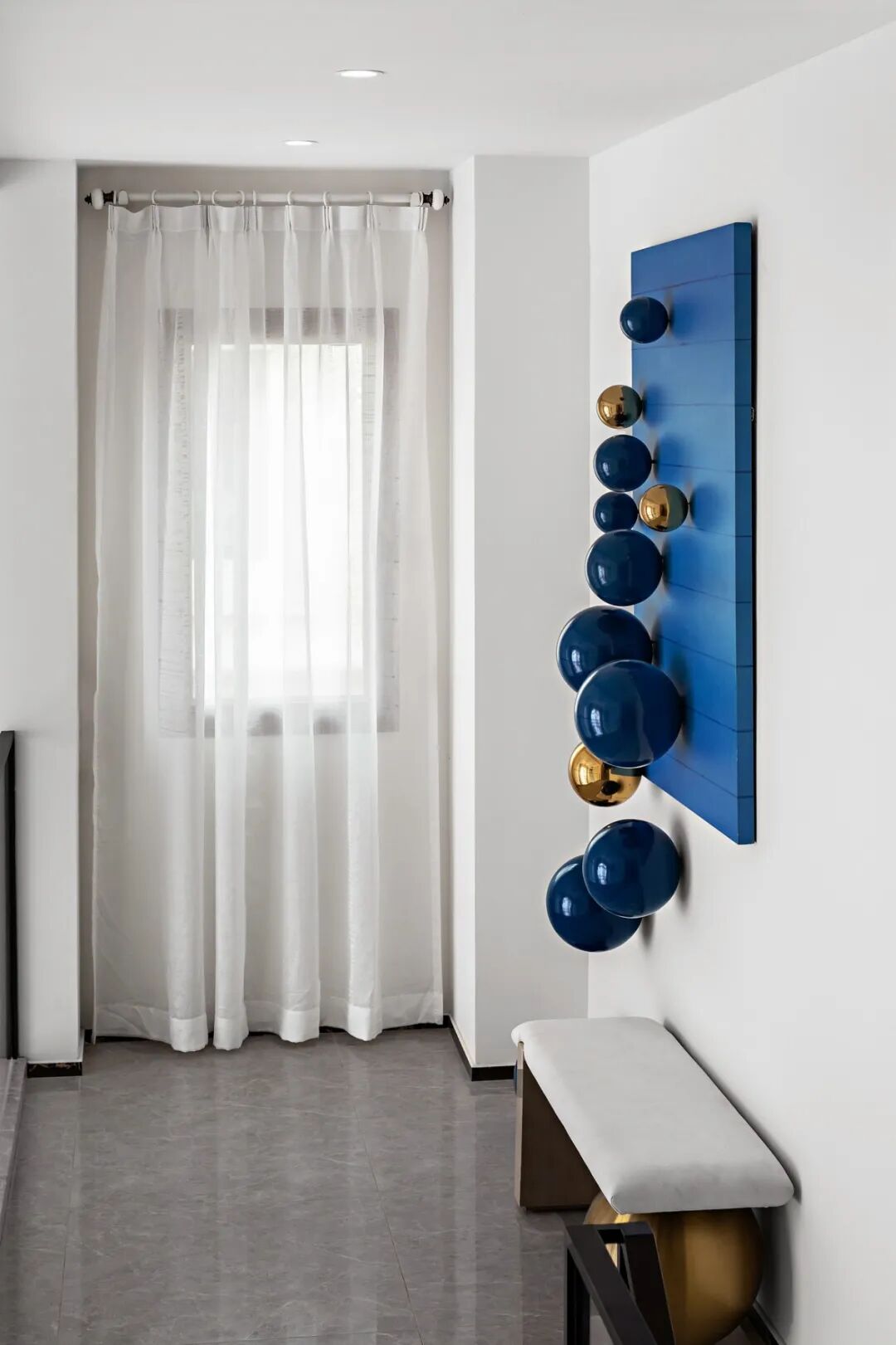 轻柔的海风从柔软的白纱中梳过,头顶上的圆形吊灯在轻盈的摇荡中,发出风铃般欢快的脆响,如海边漂浮的肥皂泡泡,在灵动而轻柔的互动中,褪去疲惫感受心安。