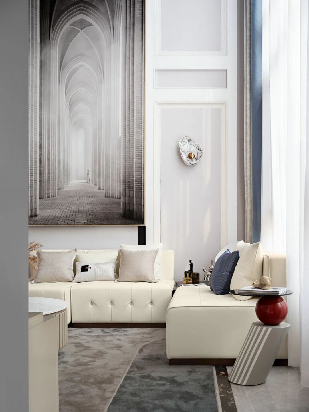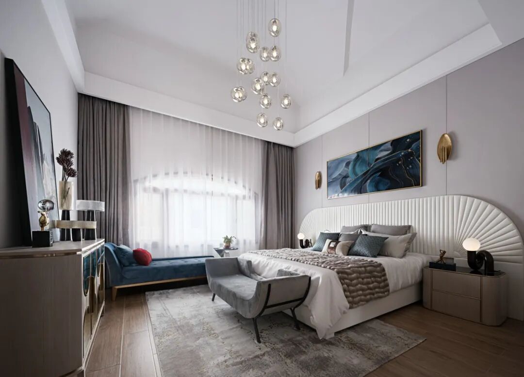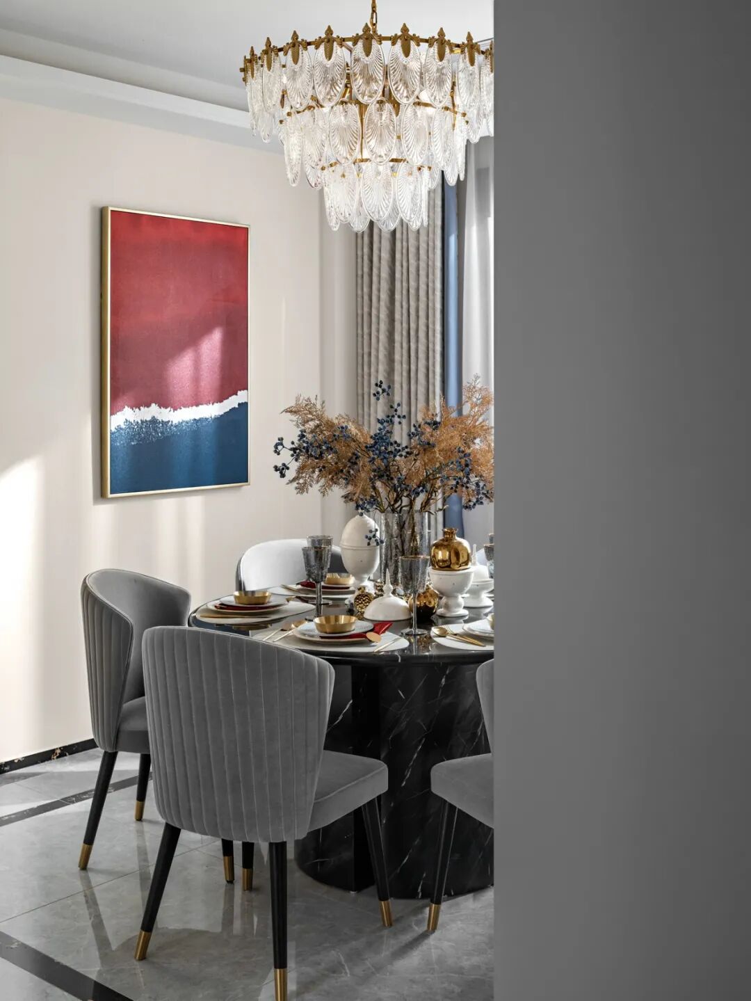 轻柔的海风从柔软的白纱中梳过,头顶上的圆形吊灯在轻盈的摇荡中,发出风铃般欢快的脆响,如海边漂浮的肥皂泡泡,在灵动而轻柔的互动中,褪去疲惫感受心安。